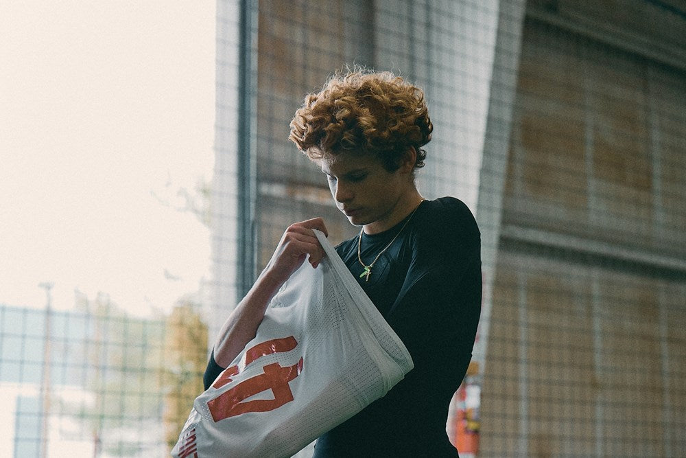 Compression moisture wicking fabric with strategically placed breathable mesh panels for maximum comfort.