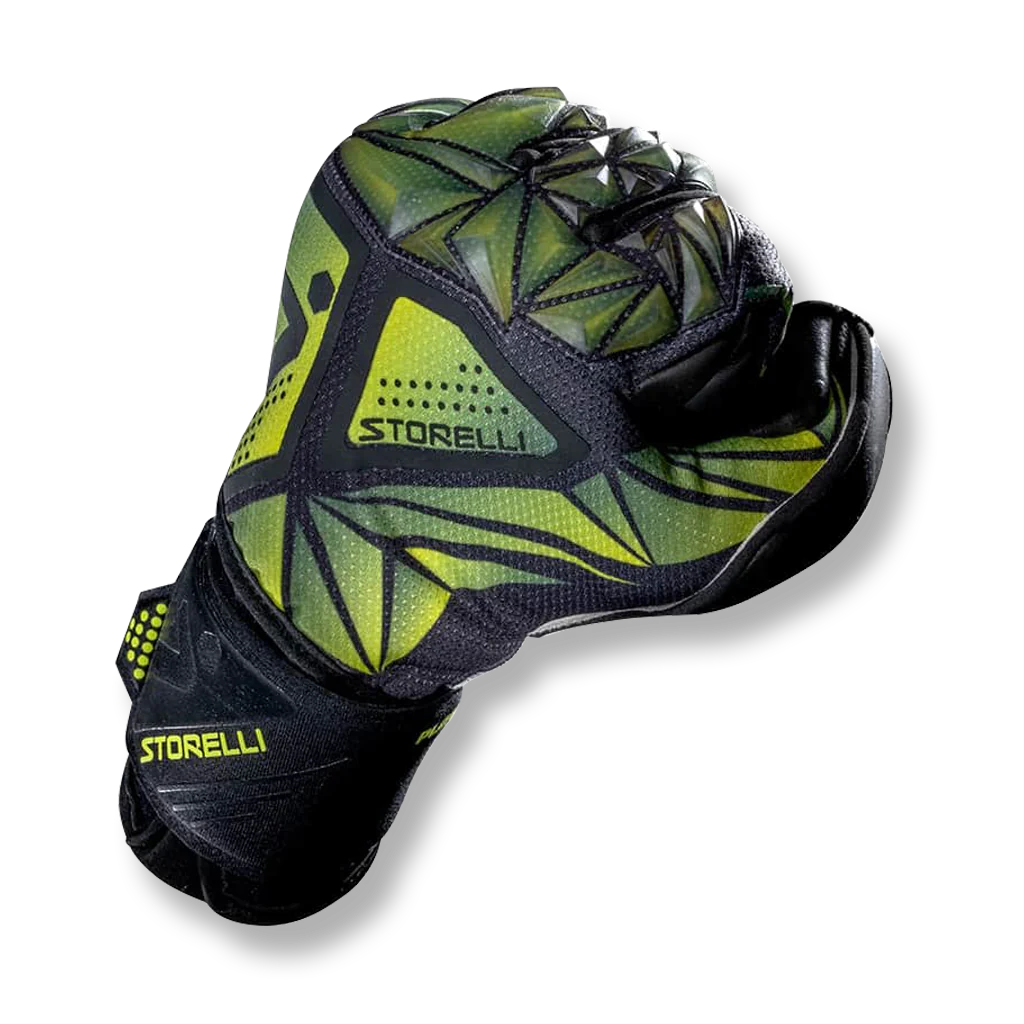 Engineered with 3mm of impact-absorbing foam padding for extreme palm protection and 3.5mm of high-grade Storelli Giga German premium latex and textured punch zones for advanced ball control.